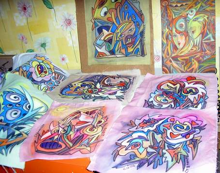 Я люблю рисовать на тканях абстрактные композиции..сфотографировала,пока сушились краски..