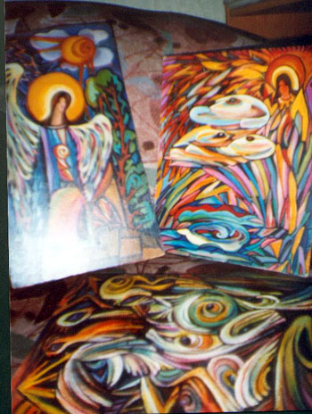 Тоже выставка,но в гостиной..в ванной картины на стекле))
